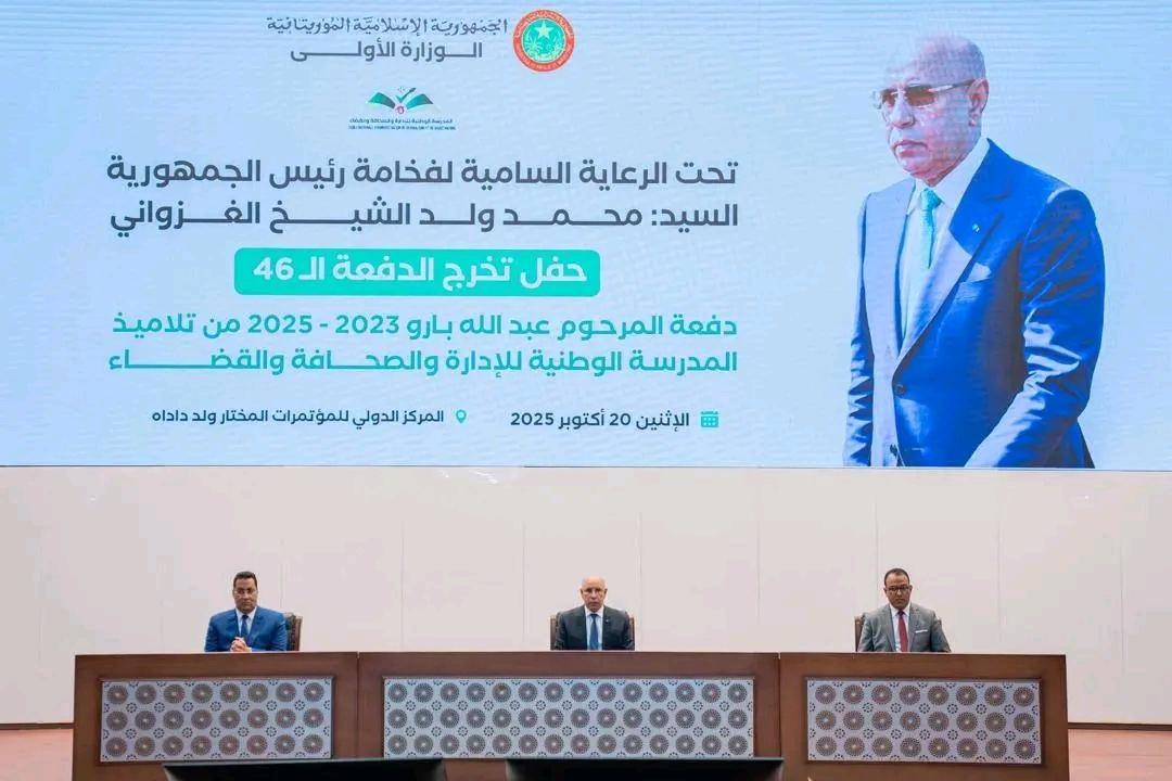 إن تقدم الدول وتطور الأمم يقاس بما لديها من كفاءات وما تتقن من مهارات، لذا أصبحت صناعة رأس المال البشري وتحسين الخبرات الوطنية عمادَ الريادة في هذا العصر، ومعيارا أساسيا من معايير التنمية والازدهار، وهو ما أوليتموه -فخامة الرئيس- اهتماما منقطع النظير، وها نحن اليوم نحتفي معكم بتجسيد رؤيتكم الثاقبة في هذا المجال، وذلك بمناسبة تخرج دفعة جديدة من دفعات المُكوّنين في المدرسة الوطنية للإدارة والصحافة والقضاء.